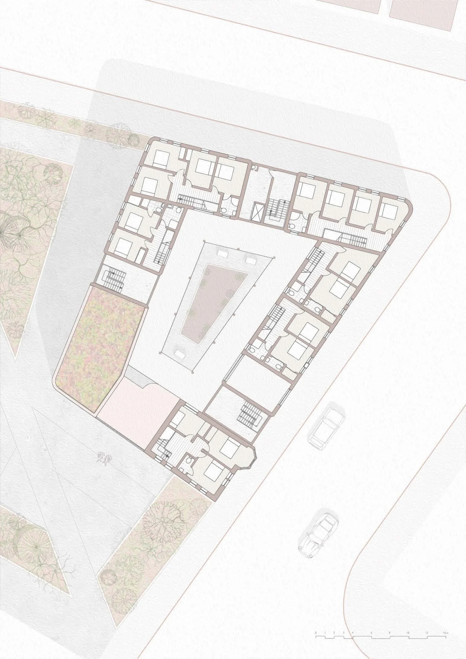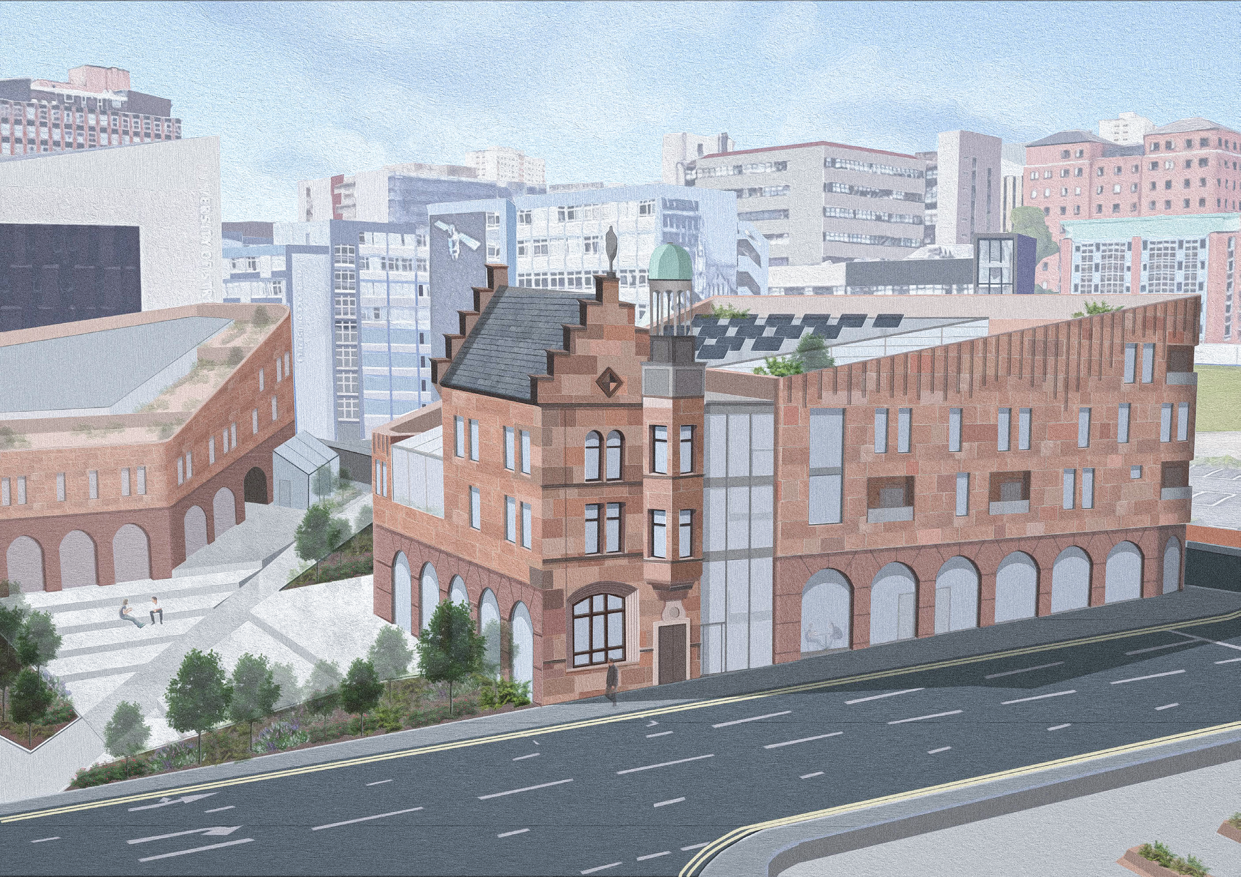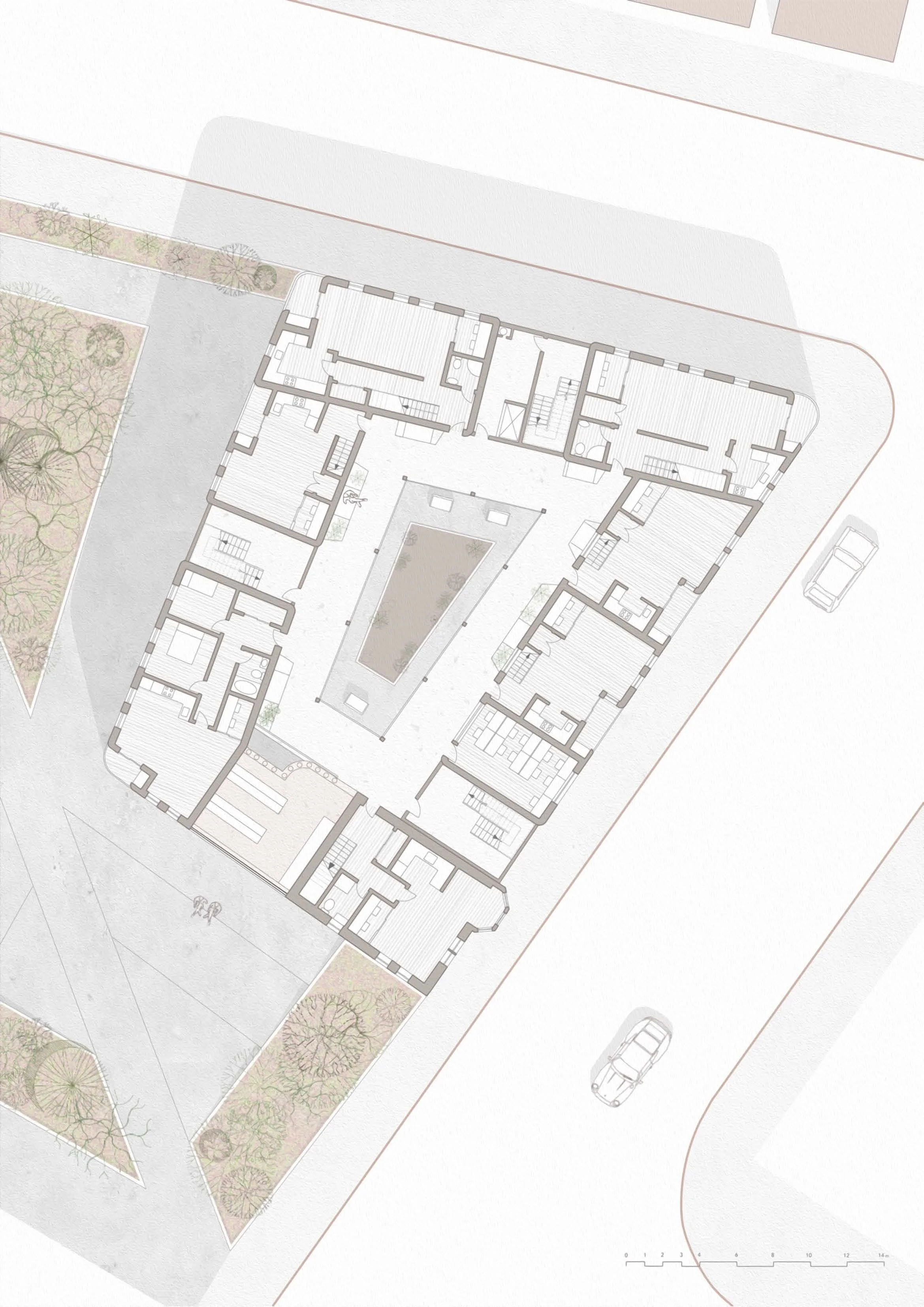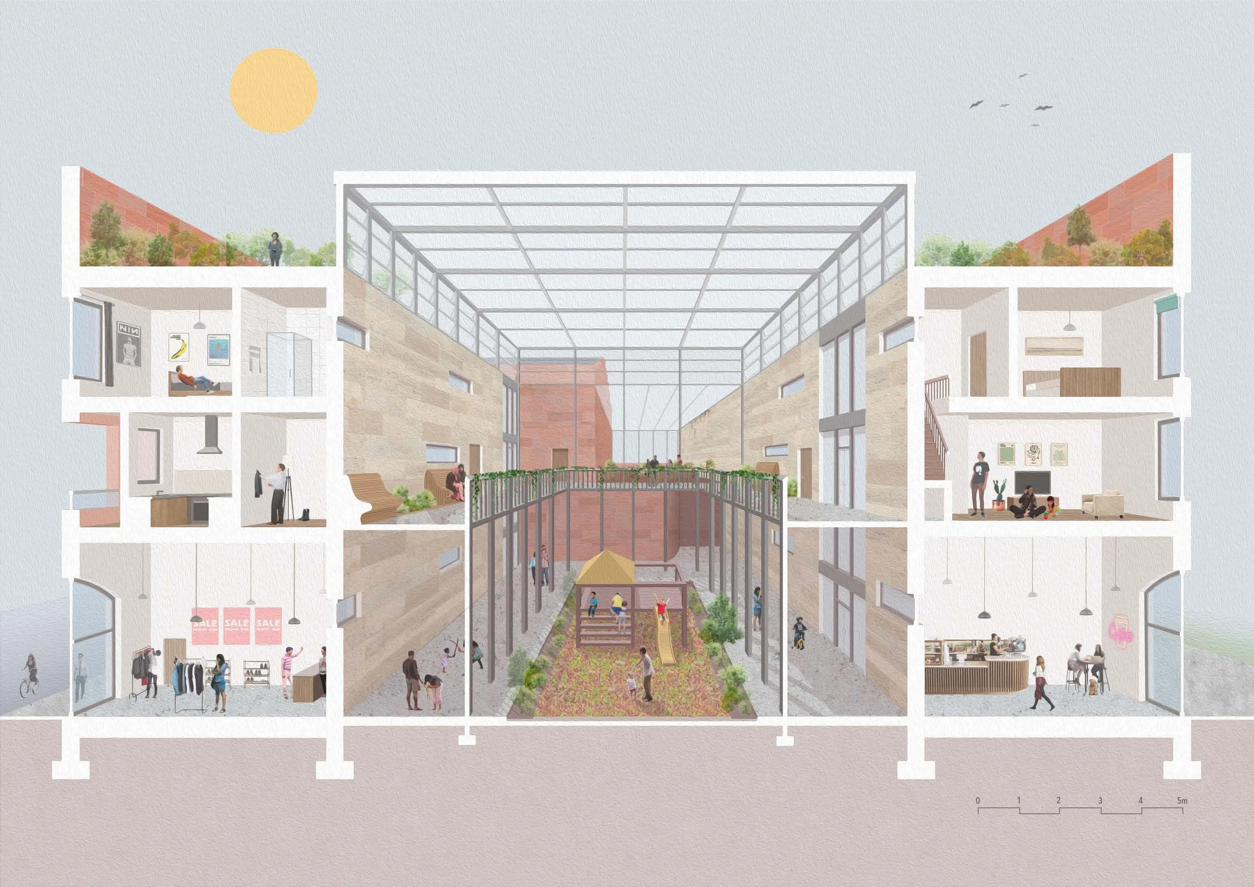 The scheme situated on High Street in Glasgow’s Merchant City, was designed to accommodate young adults, professionals and mature students in the aftermath of the pandemic, and with that, the remote working model. The strategy proposed dwellings with comfortable space for individuals to work from home whilst in close proximity to their households and families. The pandemic demonstrated that working from home was not just a temporary measure, and that healthy home working environments need to be considered in future housing schemes.